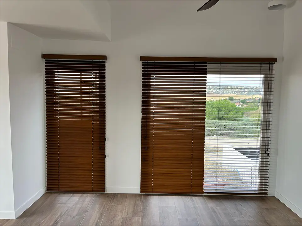 Los estores venecianos de madera son la opción ideal para dar un aire cálido y sofisticado a tus espacios. Fabricados con materiales de gran calidad, combinan durabilidad y estilo atemporal. Sus lamas orientables permiten graduar la luz a tu medida, manteniendo la privacidad sin renunciar a la luminosidad. Una elección versátil para salones, oficinas o dormitorios con personalidad.